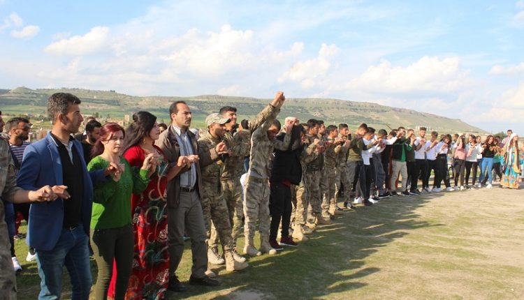 Bi sedan şêniyên Girkê Legê jî bi heman boneyê daketin qadan û bidawîkirina DAIŞ’ê pîroz kirin. Şêniyan bi karwanekî wesayîtan ku ji sedan erebeyan pêk hat, ji qada Şehîd Xebat ber bi paymengeha Şehîd Baz a Zanistên Perwerdehiyê ve ketin rê. Şênî di nav kolanên sereke yên navçeyê de geriyan û dirûşmên silavkirina HSD, YPG û YPJ’ê berz kirin. Şênî li ber Paymengeha Şehîd Baz sekinîn û xelekên govendê gerandin.
